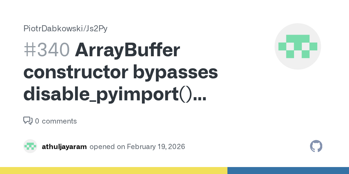 A new sandbox escape in js2py via the ArrayBuffer constructor bypasses disable_pyimport() and the CVE-2024-28397 patch. Here is what was found and what you should do about it.