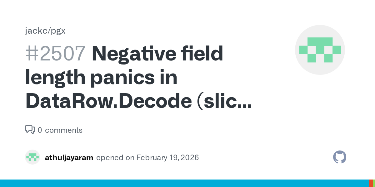 Negative Field Length Panic in pgproto3/v2 DataRow.Decode