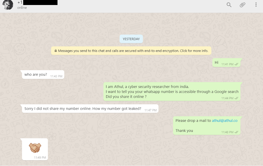 Today, I made the web a safer place 😊. I fought for your privacy and we won . They removed as much as 400000 Whatsapp phone numbers from the web leaked from wa.me and api.whatsapp.com