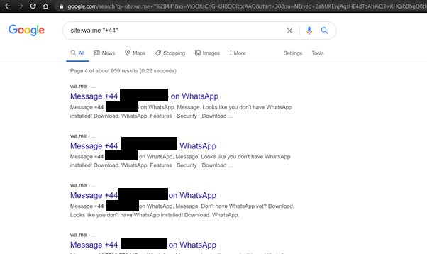 I have discovered this privacy issue in the WhatsApp web portal that leaked around 29000–300000 WhatsApp user’s mobile numbers in plaintext accessible to any internet user in plaintext. The number of numbers accessible to you may differ due to Google bot crawl daily and its indexes are updated, also the search results vary in google.com, google.co.in and similar regional TLD’s. User’s affected are from United States, United Kingdom, India and almost all other countries. What makes this easy or appears to be simple is that data is accessible on the open web and not on the dark web.